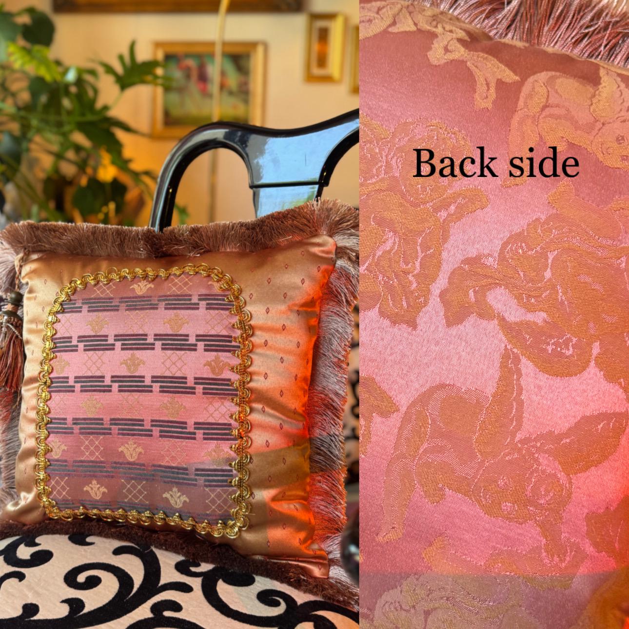 Trimmed in golden fringe and finished with metallic velvet-style appliqué, this pillow isn’t just decor — it’s an anchor. A radiant presence for rooms that hold both beauty and meaning.